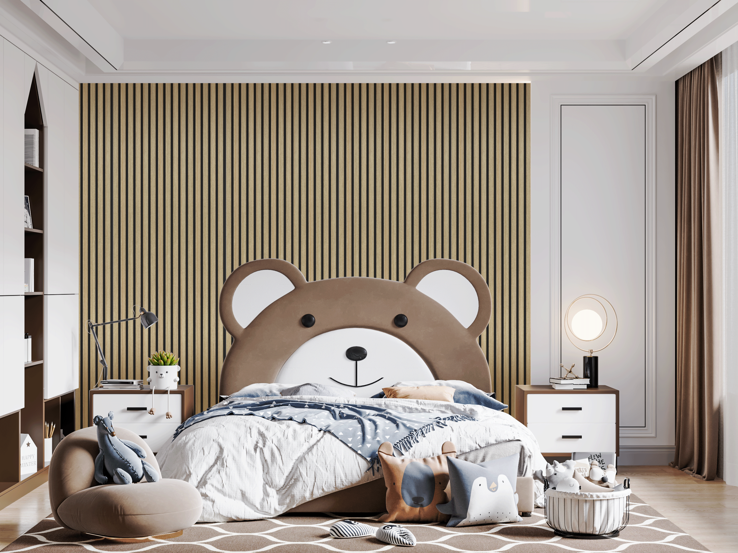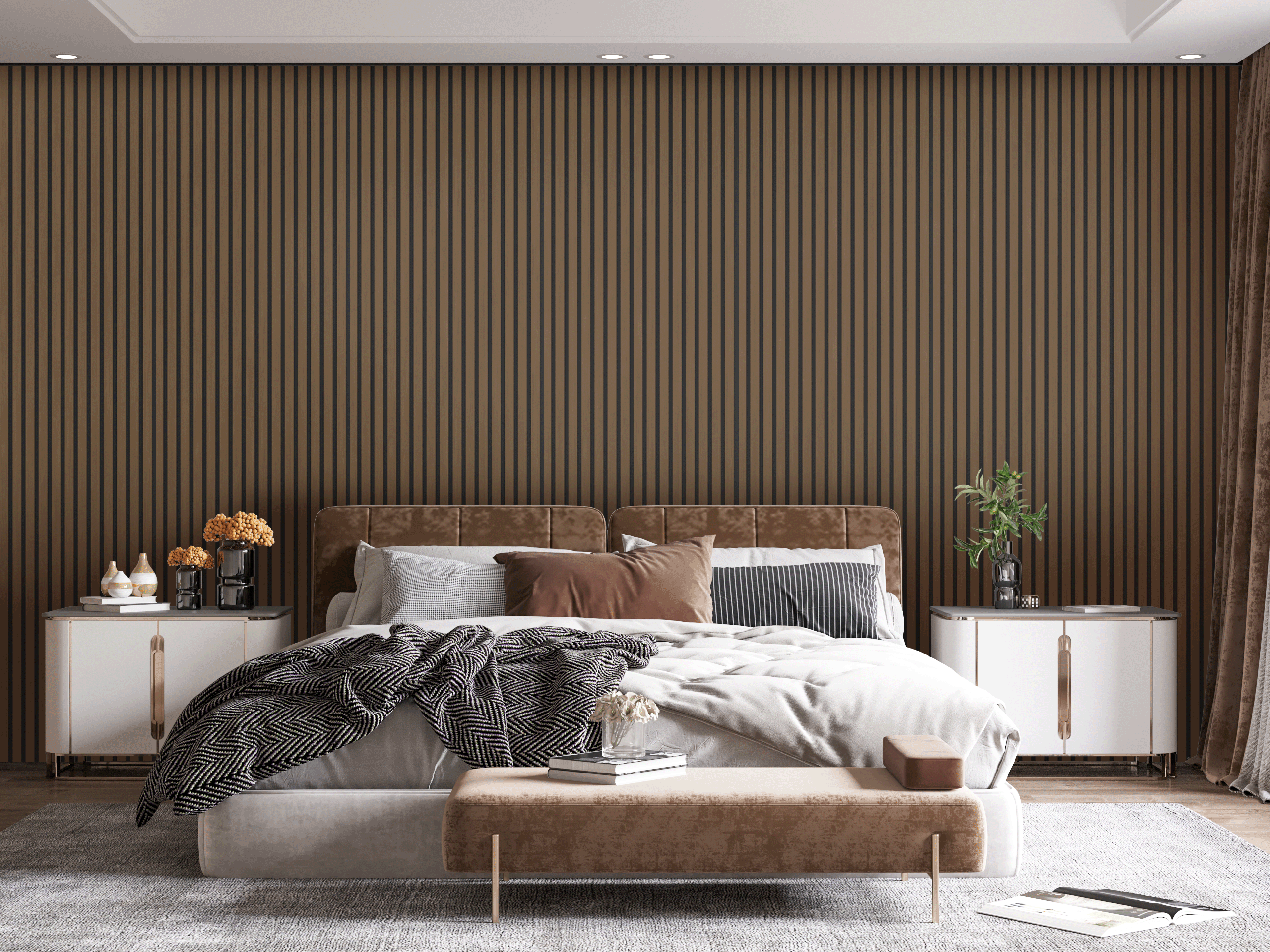 V této galerii najdete inspiraci pro využití 3D akustických panelů v domácnostech – v obývacích pokojích, ložnicích, pracovnách, chodbách i dětských pokojích. Panely lze použít jako dominantní prvek celé stěny, elegantní obklad za televizí nebo postelí, případně jako decentní doplněk, který prostor zútulní a ztiší.